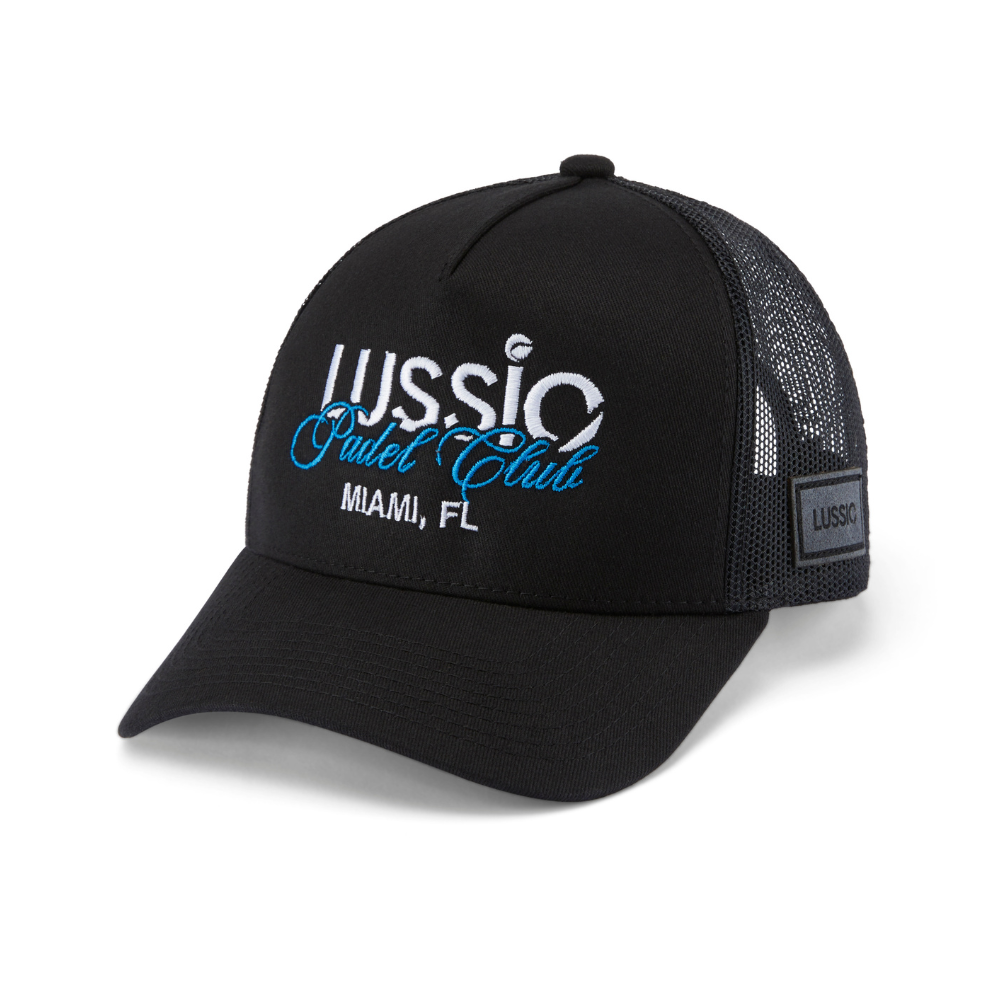Designed with understated detail, this cap showcases the “Lussio Padel Club, Miami, FL” embroidery, complemented by a side logo patch and classic snap closure. Sleek, versatile, and effortlessly elevated.